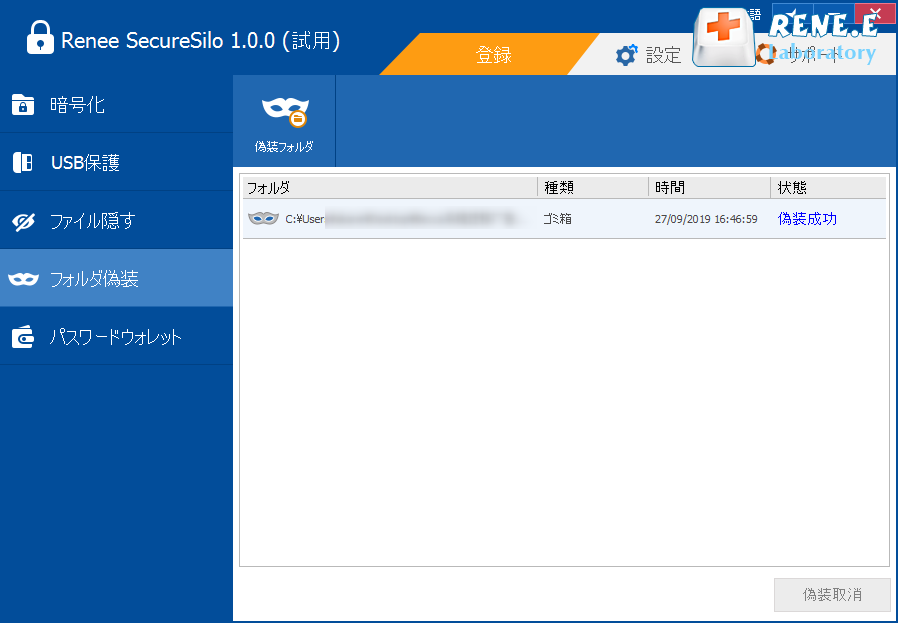 ディスク全体の暗号化に加えて、ディスク上のデータ情報を保護する必要がある場合は、ファイルを偽装することもできます。Renee SecureSiloは、フォルダを偽装し、フォルダを変形させ、他のユーザーの視界を混乱させる可能性があります。